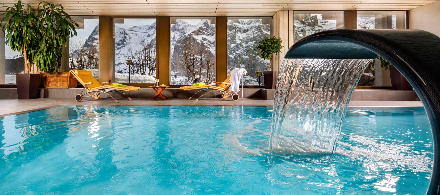 Tauchen Sie ein in unser alpines Wellness-Angebot. Ein erfrischendes Bad mit Blick auf Eiger, Mönch und Jungfrau lässt Ihren Alltag vergessen. Erholen Sie sich in unserer Saunawelt inklusive erfrischendem Kneippbad. Gönnen Sie sich eine wohltuende Massage – oder entspannen Sie in unserem Ruhebereich auf grosszügigen «Relax-Schlitten» und Liegen. Sei es im Ruheraum oder auf der Panoramaterrasse, Sie geniessen immer einen traumhaften Blick auf unsere Berge. Und wer noch überschüssige Energie hat, kann sich in unserem Fitnessraum noch auspowern!